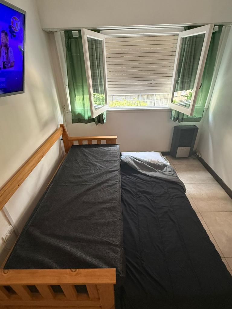 Cocina equipada con todos los utensilios, TV con cable, cama doble con vista a la calle.