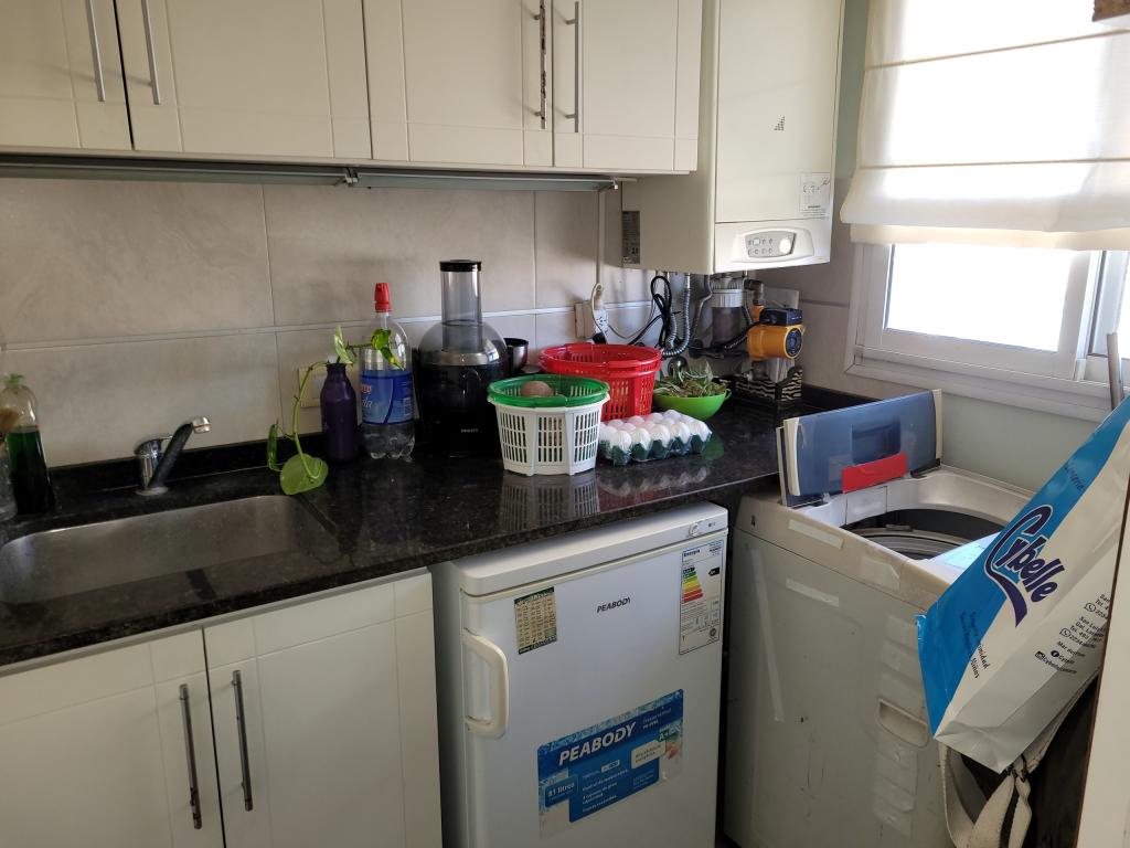 Muy luminoso, 77 mts, balcón en el que se ve el mar, lavadero con lavaropas, frezzer, pileta.
